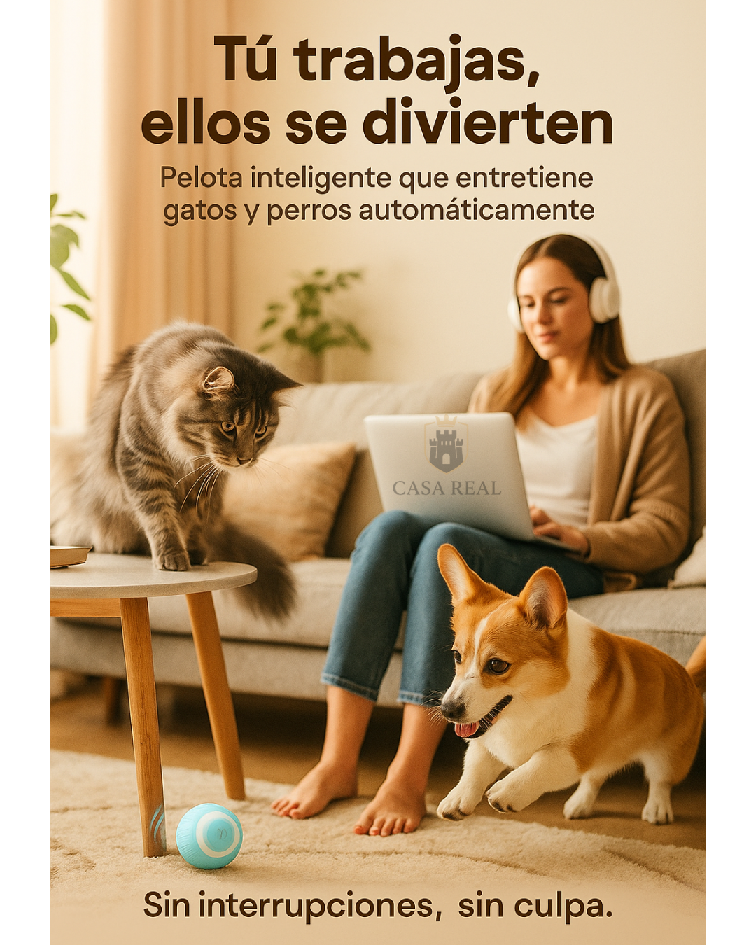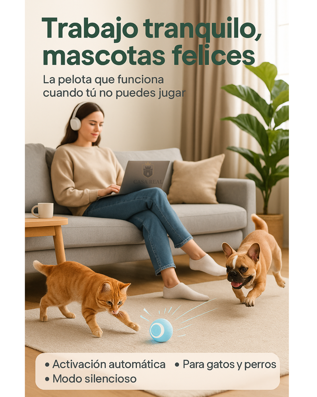 Presentamos la Caza Pelota Inteligente para Mascotas: un juguete interactivo que se mueve por sí solo, gira, cambia de dirección y ¡despierta la curiosidad de cualquier mascota desde el primer contacto!