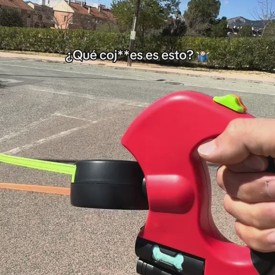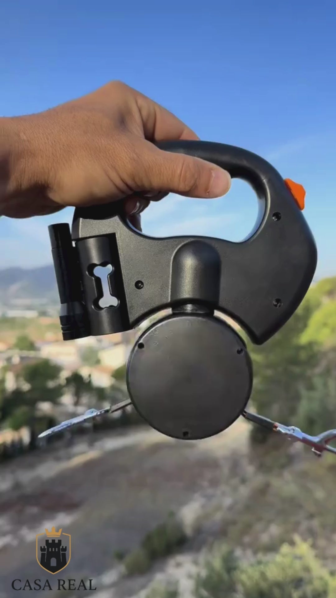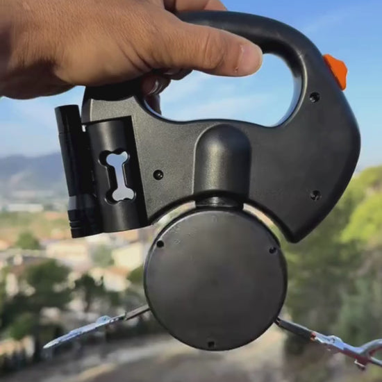 CORREA DOBLE RETRACTIL 360° LINTERNA Y DISPENSADOR DE BOLSAS PARA PERROS