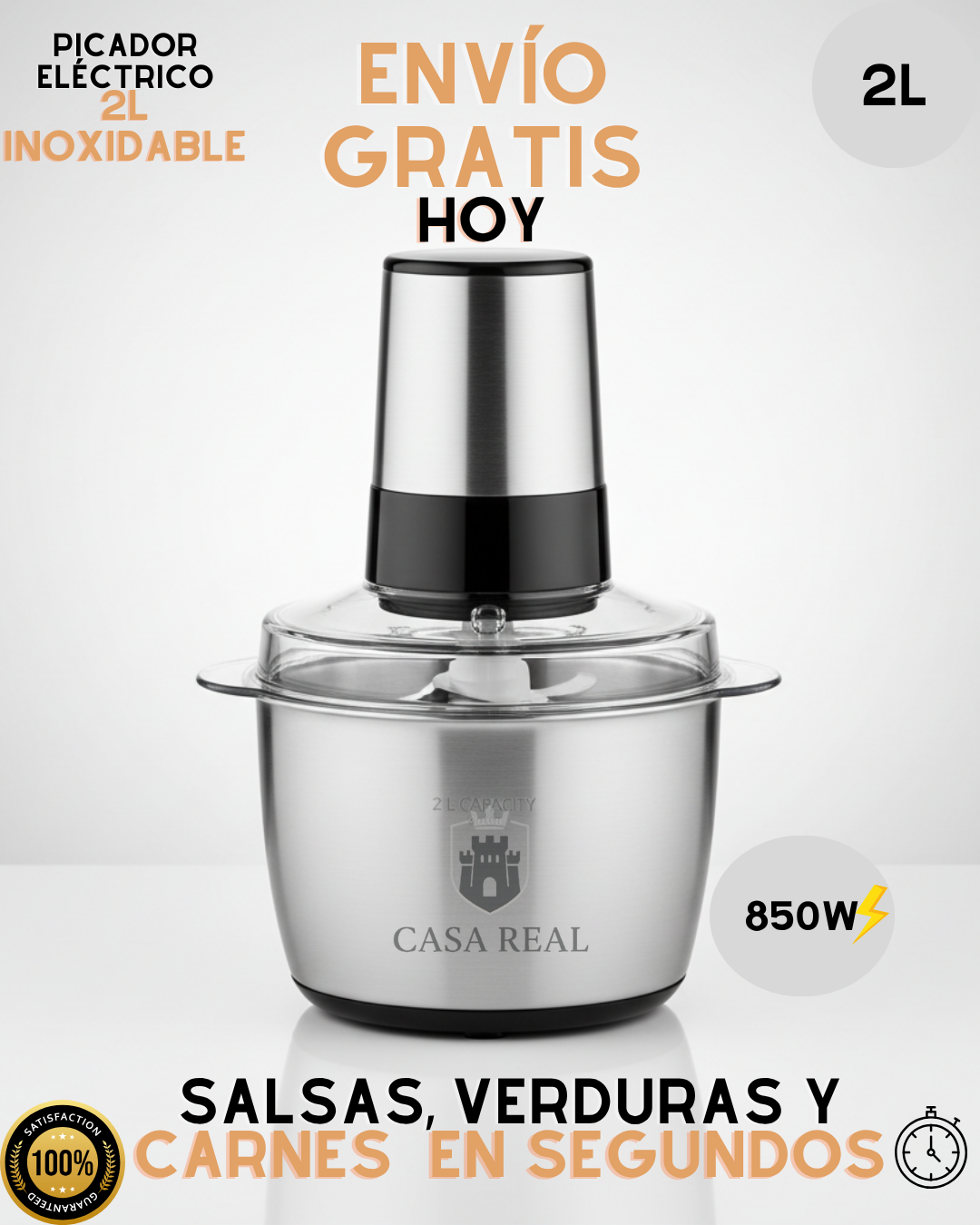 850W de poder real | Capacidad XL de 2 Litros | Resultados en solo 6 segundos