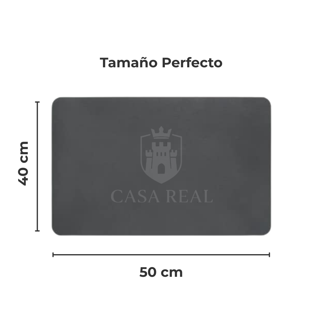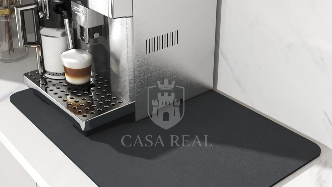 Este tapete absorbente es la solución perfecta para evitar derrames y mantener tus superficies impecables. Ideal para colocar debajo de tu cafetera, dispensador de agua o utensilios de cocina.